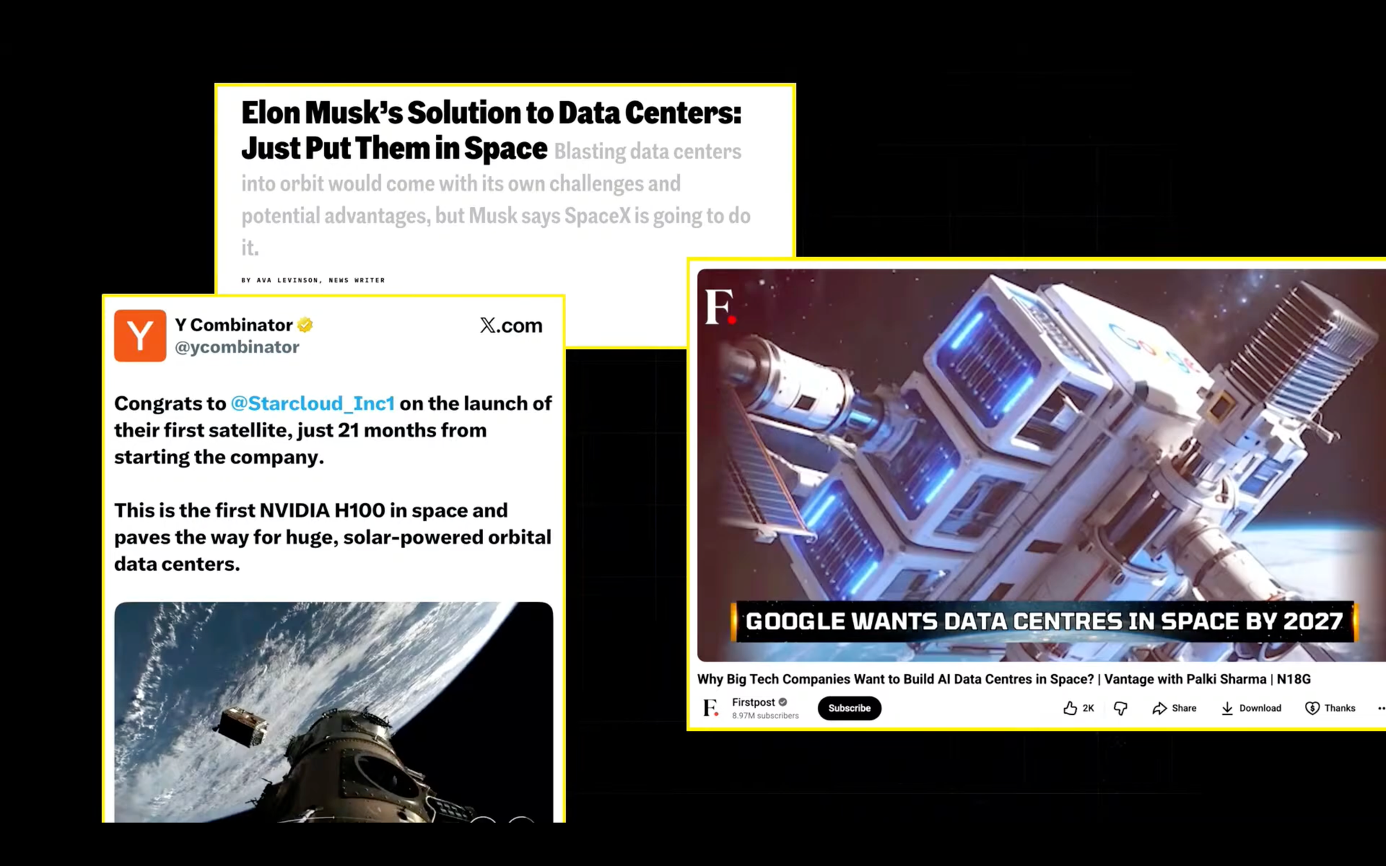 Google and SpaceX are already looking into the solutions. One to note is also a recent startup from Y Combinator called Starcloud that just a few days ago raised a Series A of $170 million to make efficiency of space data centers comparable to the ones on Earth.